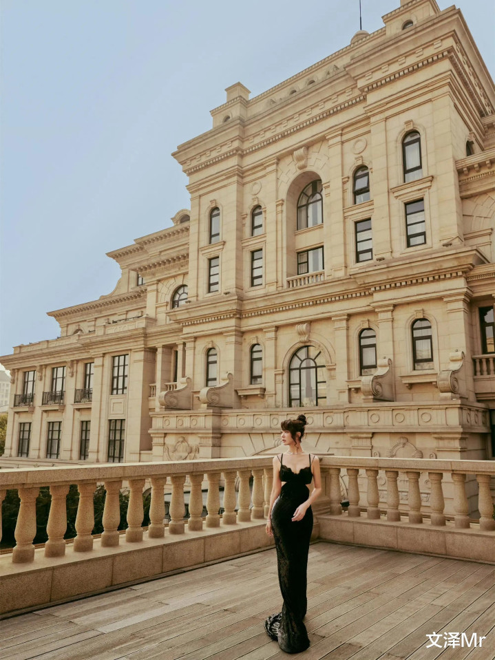 远景也毫不逊色!在建筑前,凯琪的气质完全 hold 住全场,黑色礼服在浅色背景下格外突出,这姿态,优雅得不像样,妥妥的女神范儿
